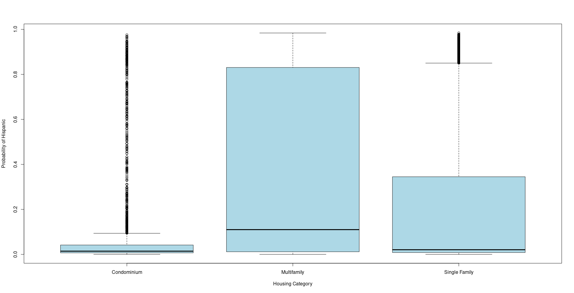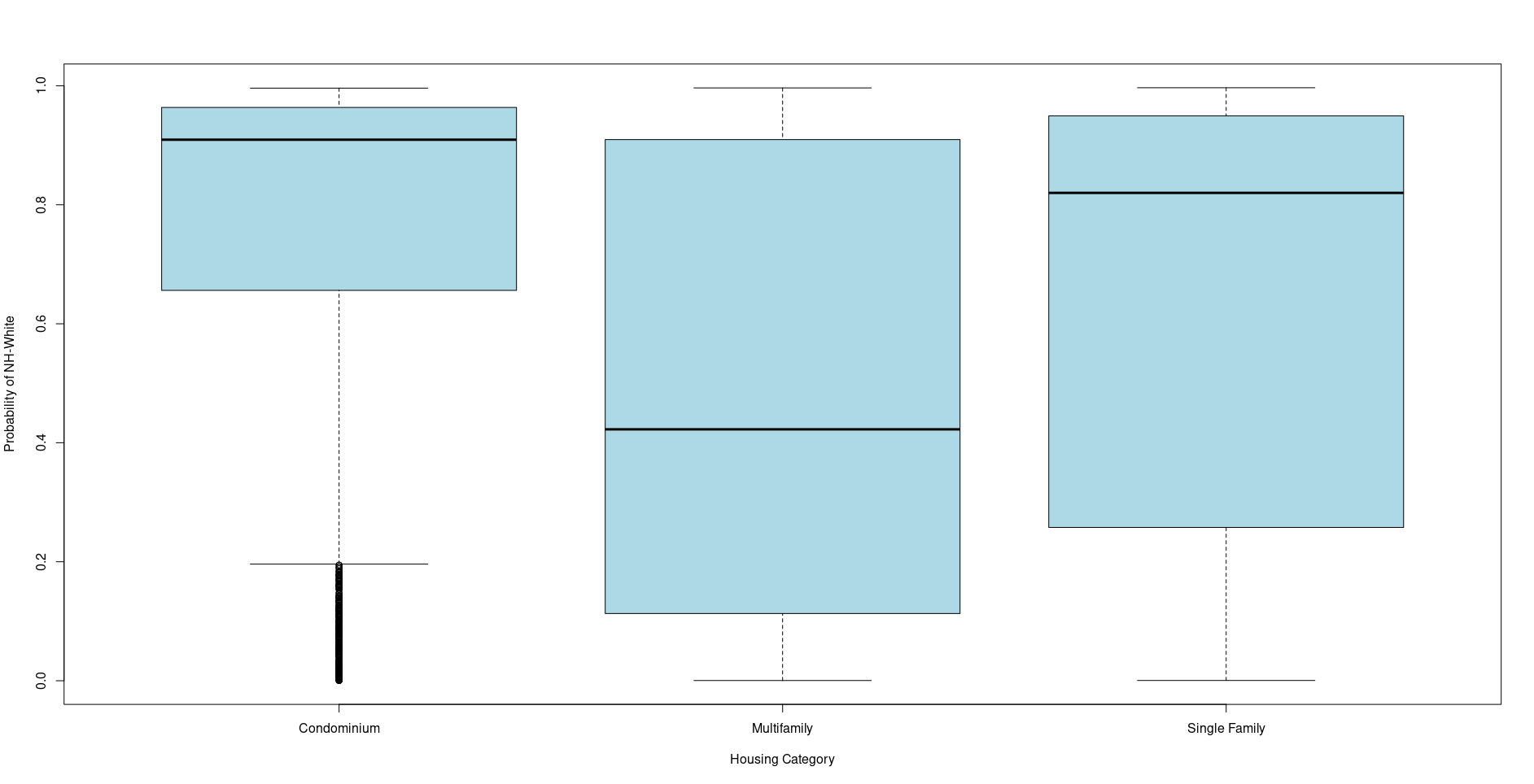 The first is of the probability of being Non-Hispanic White and the second the probability of being Hispanic, by property type.